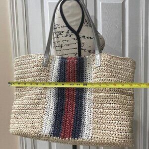 This vibrant accessory is not just a tote; it's a statement piece that embodies the carefree spirit of summer with a boho-chic vibe. Whether you're heading to the beach, exploring a summer market, or having a picnic in the park, this bag is designed to complement your sunny weather adventures with effortless style. Its extra-large size ensures you'll never have to leave anything behind, and its lightweight construction means it won't weigh you down. Ideal for those who appreciate both style and practicality, this crochet straw tote bag is a must-have addition to your seasonal wardrobe. Like new