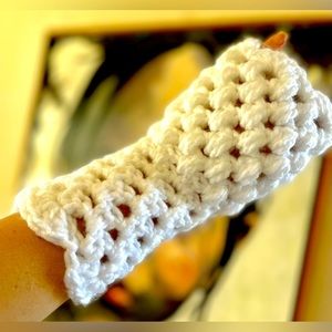WHITE CROCHETED FINGERLESS GLOVES