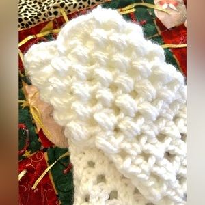 These adorable cottagecore fingerless gloves are just too cute!! Soft, puffy, white acrylic yarn in a pretty puff and granny stitch will have you warm and cozy while still allowing access to your devices. So pretty!! Makes a great gift!!