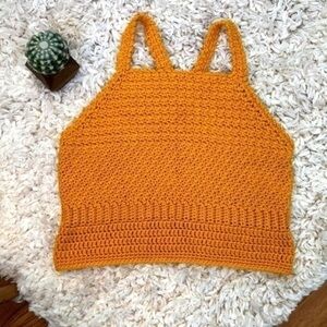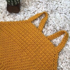 CROCHETED TOP | Women’s Hand Crocheted Mustard Yellow Medium Knit Tank Top