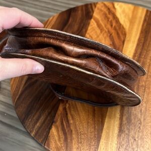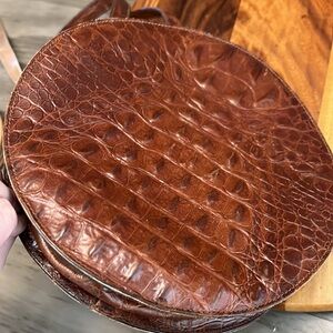 Genuine crocodile vintage Spulcioni Firenze round crossbody bag. This bag has some normal vintage distressing and inside lining coming apart as seen in pic. Zippers both work. This bag is so cool!! Some of these bags go at auction and are in museums!! Check out all pics and comment below with any questions