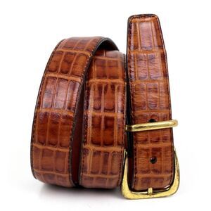 CROCO EMBOSSED BROWN GENUINE LEATHER 1 1/8"Wd CASUAL DRESS MEN'S BELT Sz 32 (R60