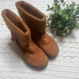 - CROCS 11554 Woman 10 Fold Over Ankle Boot Suede Leather Tan Winter Buckle Boho -