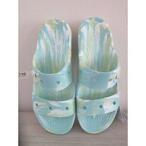 CROCS 207701-4SU Men's Sz 11 Blue/Green/White Classic Marbled Clog Sandal