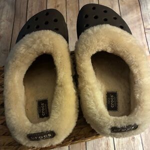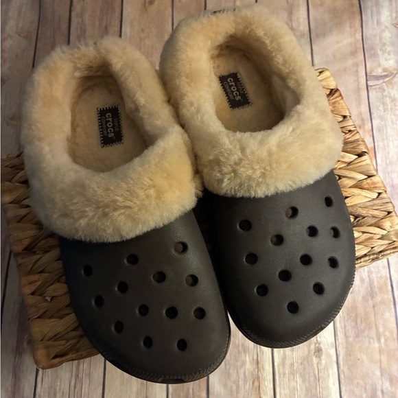 Dark brown CROCS with soft cream lining. Ideal for warmth and comfort. Triple Crocs Comfort