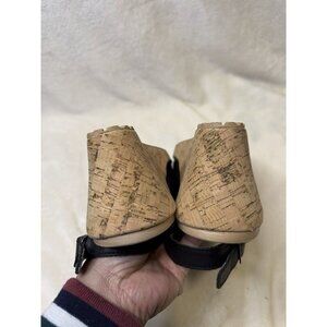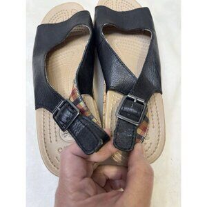 CROCS A-Leigh Black Leather Slingback Strap Cork Wedge Sandals Size 10