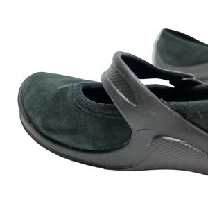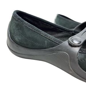 CROCS Black Genuine Leather Suede Mary Janes Loafers Flats Casual Shoes sz 6