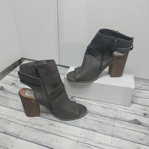 Chic black sandals with a bold silver accent. Comfortable and stylish for any outing.