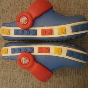 These boys' toddler Crocs Lego shoes are in a size 4-5, featuring a slip-on style with a round toe and ankle strap for added comfort and stability. The blue and red color scheme and Lego character design make them perfect for summer, fall, and spring seasons. Made with polyurethane outsole and synthetic upper material, these shoes are durable and easy to clean. The moderate cushioning level ensures that your little one is comfortable while walking or attending school. Ideal for casual wear and activewear, these Crocs Lego shoes are a fun and stylish choice for young boys.