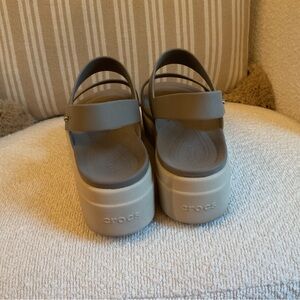 Step out in style with these chic tan-gray platform sandals. Perfect for any occasion, these sandals offer both comfort and elegance.