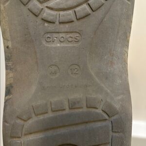 Comfortable CROCS sandals with a brown and green camouflage pattern. Ideal for everyday wear.