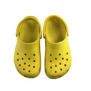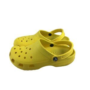 Bright yellow Crocs classic clog sandals, perfect for outdoor use, waterproof and comfortable. Suitable for women's size 8 or men's 6.