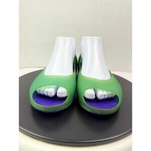 CROCS Carlie Women’s Ballet Slip On Shoes Green Purple Peep Toe Comfort Sz 9. Good condition, some signs of wear. See photos for reference.