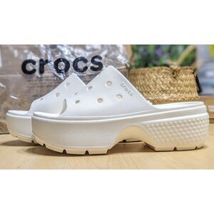 CROCS Chalk White Stomp Slide Sandals Women's Size 10 NWT