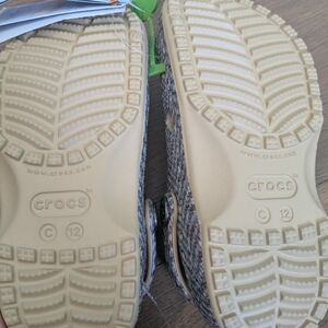 New with the tag CROCS. size 12 little kid. unisex tweed pattern. A great neutral pair of Crocs to match any outfit.