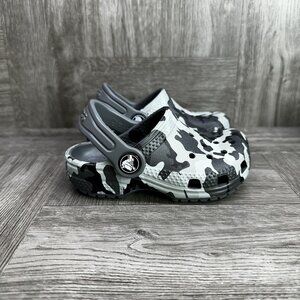 CROCS Classic Camo Infant size 5 Black Grey Clogs