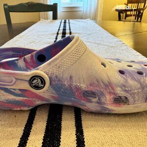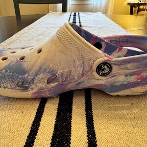 CROCS Classic Clog Children Size J 3 Marbled Tie Dye Purple Pink White
