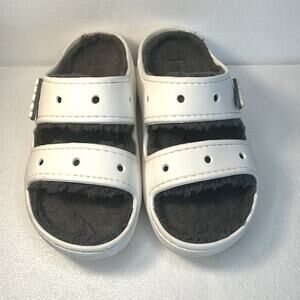 The new Classic Cozy Sandal features a soft, fuzzy liner, style-forward heightened outsoles, and two upper straps that offer enhanced foot security. Seven holes on each sandal allow maximum personalization with Jibbitz charms, while Croslite foam construction keeps them light and easy to wear.