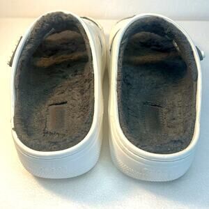 Classic Cozzzy Sandal Details: Warm, fuzzy liner, Two-strap upper, Style-forward heightened outsoles,
