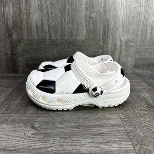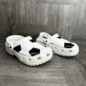 CROCS Classic Kids size 10 White Black Soccer Themed Clogs