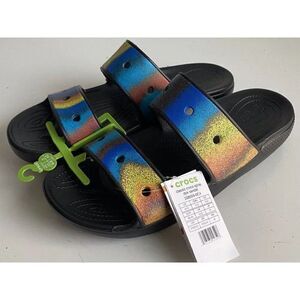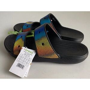 CROCS Classic SPRAY DYE SLIDES Men’s Size 13 Black Tie Dye Sandals NEW