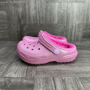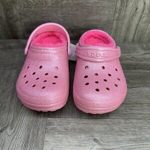 CROCS Classic Toddler size 8 Glitter Pink Lined Clogs