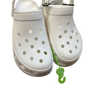 CROCS Classic Crush White Mules Clogs Adjustable Strap and Perforated Design