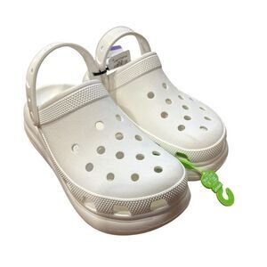 Experience the perfect blend of comfort and style with these CROCS white mules. Featuring a perforated upper for breathability and an adjustable heel strap for a secure fit, these clogs are ideal for casual outings. The molded construction ensures durability and a comfortable wear all day long.