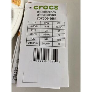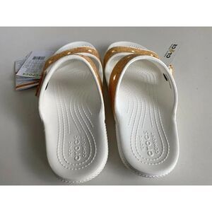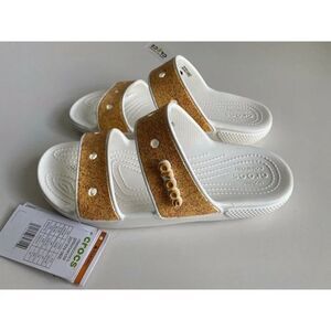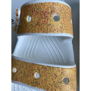 CROCS Classic Glitter Sandal White/Orange Sherbet Slip On Slide Sandal Sz 8 W.