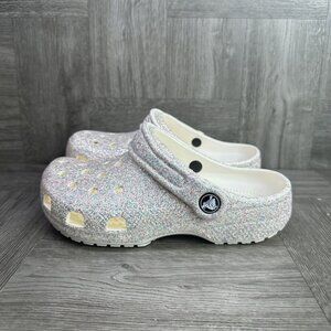 CROCS Classics Kids size 2 White Glittered Multicolored Clog