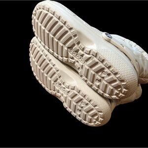 Experience comfort and style with these CROCS cream rain and snow boots. Featuring a unique hybrid design, these boots combine the practicality of rain boots with the comfort of clogs. The adjustable drawstring closure ensures a snug fit, while the ventilated toe area provides breathability.