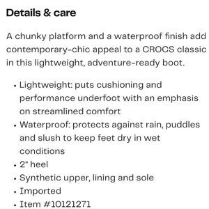 Experience ultimate comfort and protection with the CROCS Cream Winter & Rain Boots. These high-top boots feature a smooth, waterproof design perfect for wet and chilly conditions. The thick, integrated sole ensures stability and durability, making them ideal for winter adventures.