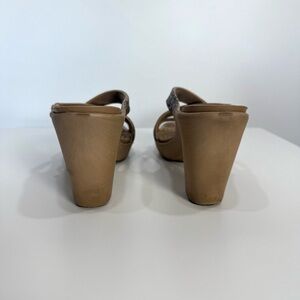 The Crocs Cyprus IV Leopard Heels Sandals in women's size 10 are a stylish and comfortable choice for formal occasions. With a high block heel and decorative leopard print accents, these slip-on sandals feature a cushioned insole and breathable Croslite material for all-day comfort. The unique design and animal print pattern make these sandals perfect for weddings, parties, or cocktails, adding a touch of designer flair to your outfit. Made by Crocs, these platform heels are both fashionable and practical, making them a versatile addition to your summer, fall, or spring footwear collection.