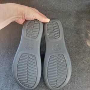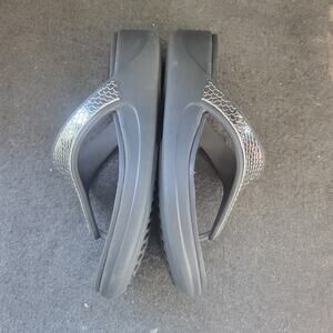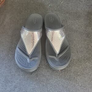 CROCS Dual Comfort Monterey Metallic Wedge Sandal 9W Navy Blue Animal Print