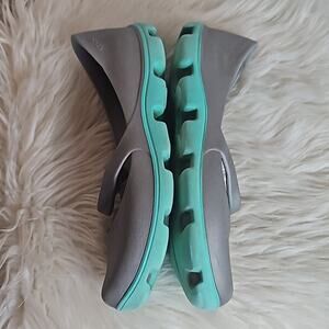 CROCS Duet Sport Mary Jane Flats Grey and Aqua in great condition. Minor wear on the bottoms and toe area. Please see photos.