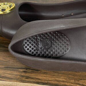 CROCS Gianna Disc Womens Size 6 Shoes Brown Gold Medallion Slip On Ballet Flats
