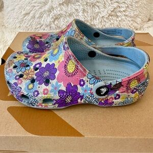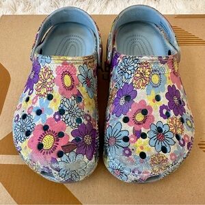 CROCS Girls Floral Clogs - Pink, Purple, Blue Size: 1