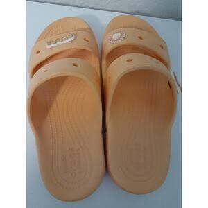 CROCS Iconic Ladies Orange Two Strap Comfort Slides Sandals Jibbitz size 9 EUC
