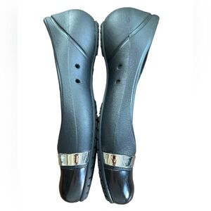 Size 8 crocs black ballet cap toe mirror band flats Kadee