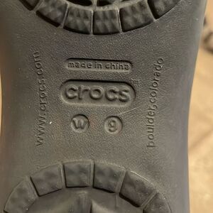 Kadee black, slip-on ballet flat, comfort shoes by CROCS in a women's size 9. Made with croslite synthetic material. Breathable, lightweight shoes perfect for travel. Shoes look like new and have little to no signs of wear. In great pre-owned condition. comfort, travel, slipon, slip-on, flat, perforated,