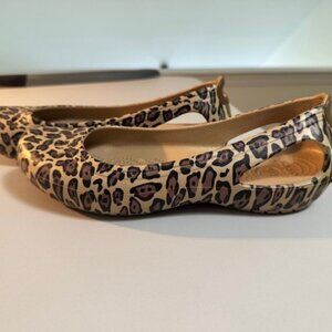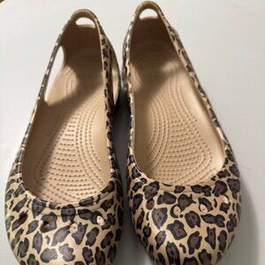 CROCS Kadee Women’s Tan Leopard Print slip on ballet flats Size 8