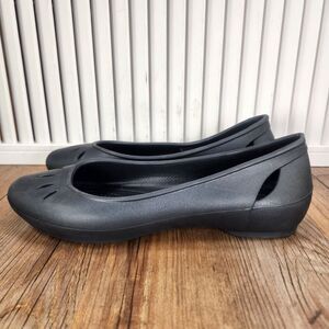 CROCS Kelli Flats 203954 Womens Size 7 Black Slip On Iconic Comfort Ballet Shoes