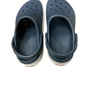 Stylish navy clogs with perforated design. Easy slip-on style for active play.