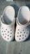 Light pink Crocs for kids. Perfect for water activities. Easy to slip on and off. Durable and comfortable design.