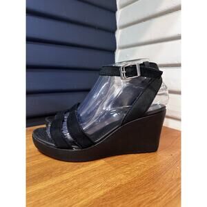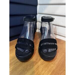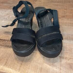 CROCS LEIGH Black Wedge Sandal Strappy Heel Women's 7.