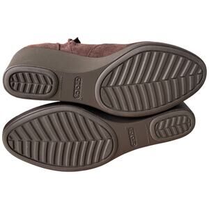 CROCS Leigh Womens 7 Espresso Suede Ankle Boots Wedge Heels Bootie Side Zip