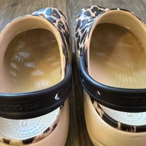 Fun leopard print slippers for women. Comfortable fit with secure black strap.