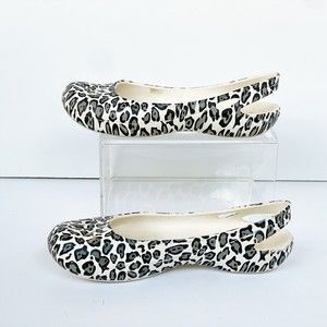 Stylish leopard print design. Comfortable slingback style. Perfect for casual wear. Am only selling because I have an identical pair! Can’t believe how comfortable these are. These look like NEW! Slight visible wear.