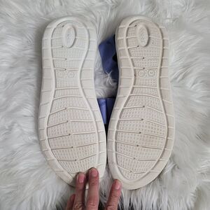 CROCS LiteRide Sandals Women’s 10 Purple Gray Stretch Straps Slip On EUC