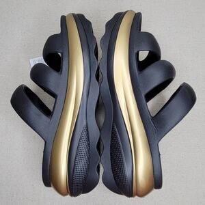 CROCS Mega Crush Metallic Triple Strap Platform Wedge Sandal Black/Gold sz W10